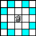 1.左に示された盤面上の全てのマスをナイトの駒で回って下さい。 2.最初の一手はどこから始めても結構です。マスの上をクリックして 下さい。 3.ナイトの駒で次に飛べるマスは水色になります。順次クリックして 全てのマスを巡り回って下さい。 4.一度通ったマスには、順番に数字がつけられます。 5.途中からやり直したい場合には、数字のついたマスをクリックする と、そこからやり直しが出来ます。 6.盤面の種類は7種類あり、右のSTAGEをクリックするとそのステー ジの盤面に変わります。ステージの変更はいつでも出来ます。 7.答えを見たい場合は、ANSWERをクリックして下さい。その時点での ステージの答えの一例がでてきます。 8.ちなみにナイトの動ける箇所は下の図の水色のマス8ヶ所です。 |