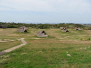 | 妻木晩田遺跡(鳥取県大山町):紀元前1C から3C前半の弥生遺跡。丘陵尾根上に900 棟以上の建物と30基以上の墳墓。洞ノ原 地区に四隅突出型墳丘墓。 |